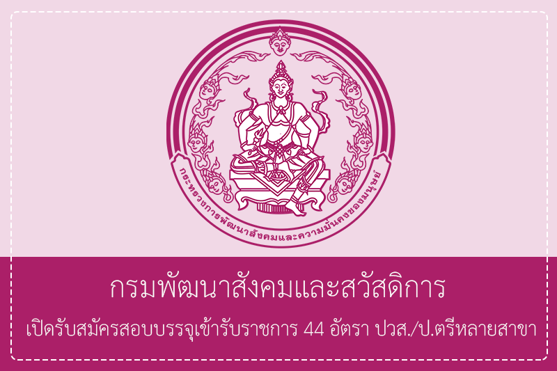 กรมพัฒนาสังคมและสวัสดิการ เปิดรับสมัครสอบบรรจุเข้ารับราชการ 44 อัตรา ปวส./ป.ตรีหลายสาขา รับสมัครทางอินเทอร์เน็ต 24 พฤศจิกายน – 16 ธันวาคม 2568