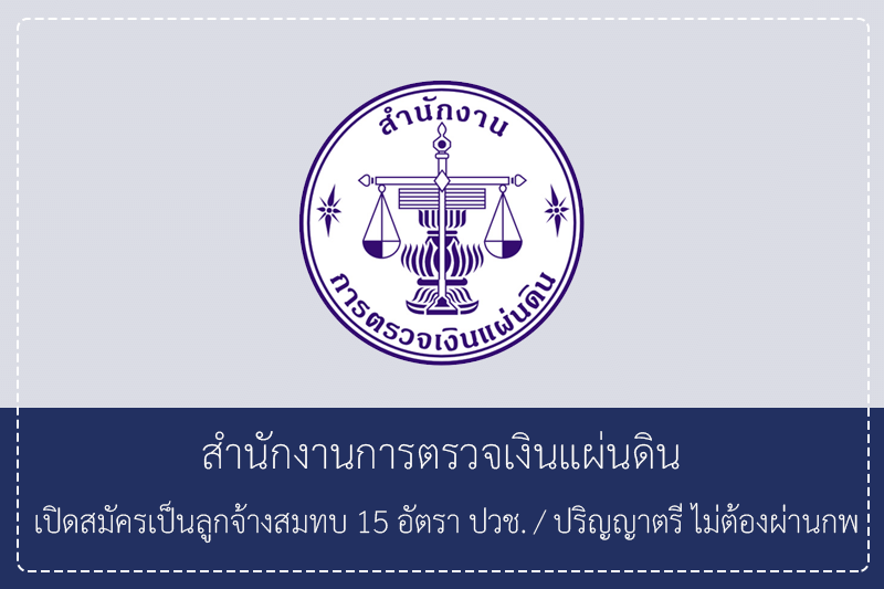 สำนักงานการตรวจเงินแผ่นดิน (สตง.) เปิดสมัครเป็นลูกจ้างสมทบ 15 อัตรา ปวช. / ปริญญาตรี ไม่ต้องผ่านกพ รับสมัคร 25 ธันวาคม 2568 – 19 มกราคม 2569