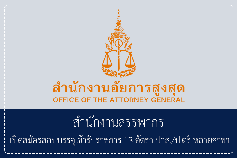 สำนักงานอัยการสูงสุด เปิดสมัครสอบบรรจุเข้ารับราชการ 13 อัตรา ปวส./ป.ตรี หลายสาขา รับสมัครทางอินเทอร์เน็ต 7 – 29 มกราคม 2569