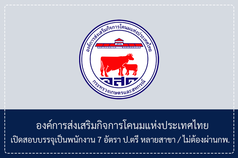 องค์การส่งเสริมกิจการโคนมแห่งประเทศไทย เปิดสอบบรรจุและแต่งตั้งเป็นพนักงาน 7 อัตรา ปริญญาตรี หลายสาขา /ไม่ต้องผ่านกพ. รับสมัครทางอินเทอร์เน็ต ตั้งแต่บัดนี้ – 15 มกราคม 2569
