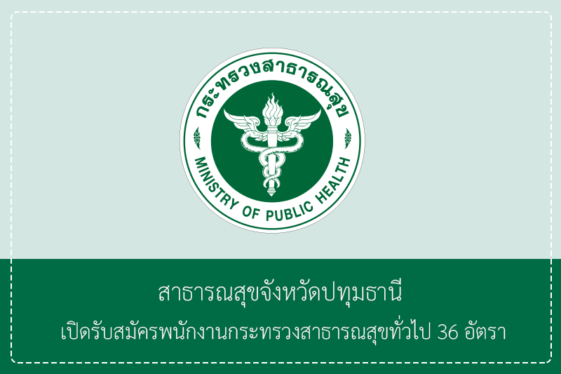 สำนักงานสาธารณสุขจังหวัดปทุมธานี เปิดรับสมัครพนักงานกระทรวงสาธารณสุขทั่วไป 36 อัตรา ม.3/ม.6/ปวส./ป.ตรีหลายสาขา รับสมัครด้วยตนเอง 16 – 20 กุมภาพันธ์ 2569