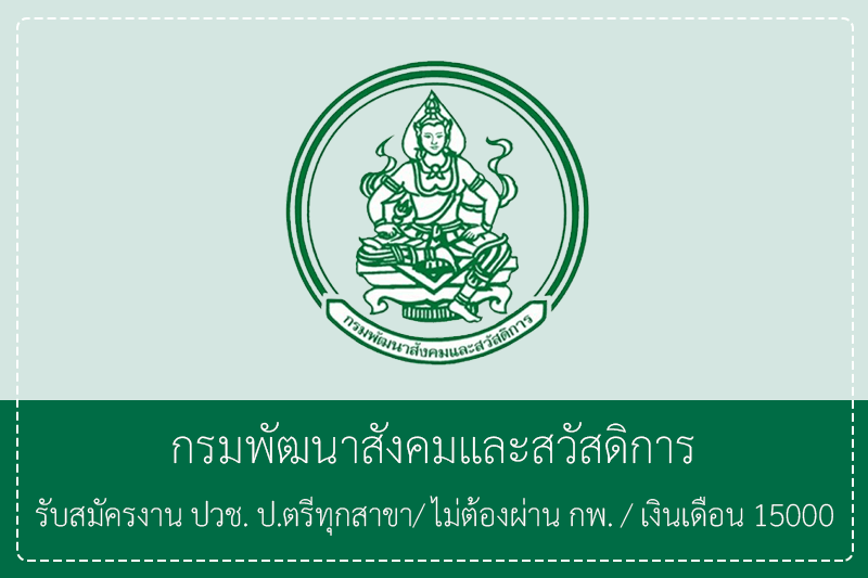 กรมพัฒนาสังคมและสวัสดิการ รับสมัครงาน ปวช. /ป.ตรี ทุกสาขา/ ไม่ต้องผ่าน กพ. / เงินเดือน 15000 / สมัครทาง email – 5 ตุลาคม 2568