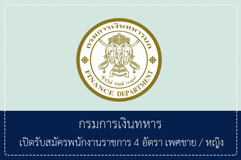 กรมการเงินทหาร เปิดรับสมัครพนักงานราชการ 4 อัตรา เพศชาย/หญิง รับสมัครทางอินเทอร์เน็ต 1 – 8 ธันวาคม 2568