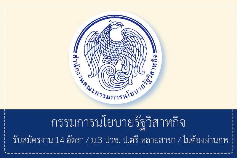 สำนักงานคณะกรรมการนโยบายรัฐวิสาหกิจ รับสมัครคัดเลือกบุคคลเพื่อเป็นลูกจ้างชั่วคราวรายเดือน 14 อัตรา / ม.3 ปวช. ป.ตรี หลายสาขา / เงินเดือน 18150 / ไม่ต้องผ่าน ก.พ. / สมัคร online – 17 ตุลาคม 2568