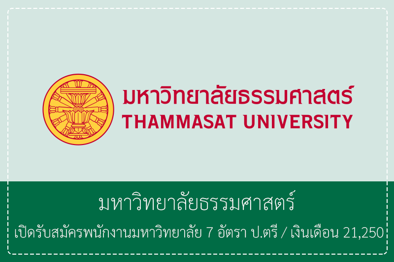 มหาวิทยาลัยธรรมศาสตร์ เปิดรับสมัครพนักงานมหาวิทยาลัย 7 อัตรา วุฒิปริญญาตรี / เงินเดือน 21,250 รับสมัครทางอินเทอร์เน็ต 7 – 16 ตุลาคม 2568